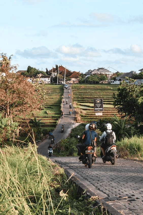 Transportation. In Bali, navigating the island’s bustling streets often involves a unique mode of transportation: the motorbike. With its narrow lanes and congested roads, traveling by car can be a bit of a hassle, especially during peak traffic hours. As a result, many locals and visitors alike opt for the convenience and agility of motorbikes to weave through the traffic with ease. If you’re inexperienced or unfamiliar with riding a motorbike, it’s not advisable to do so, especially when accompanied by children. It’s important to note that while a journey might only take 6 minutes by motorbike, the same route can take up to 40 minutes by car due to traffic congestion and narrow roads.